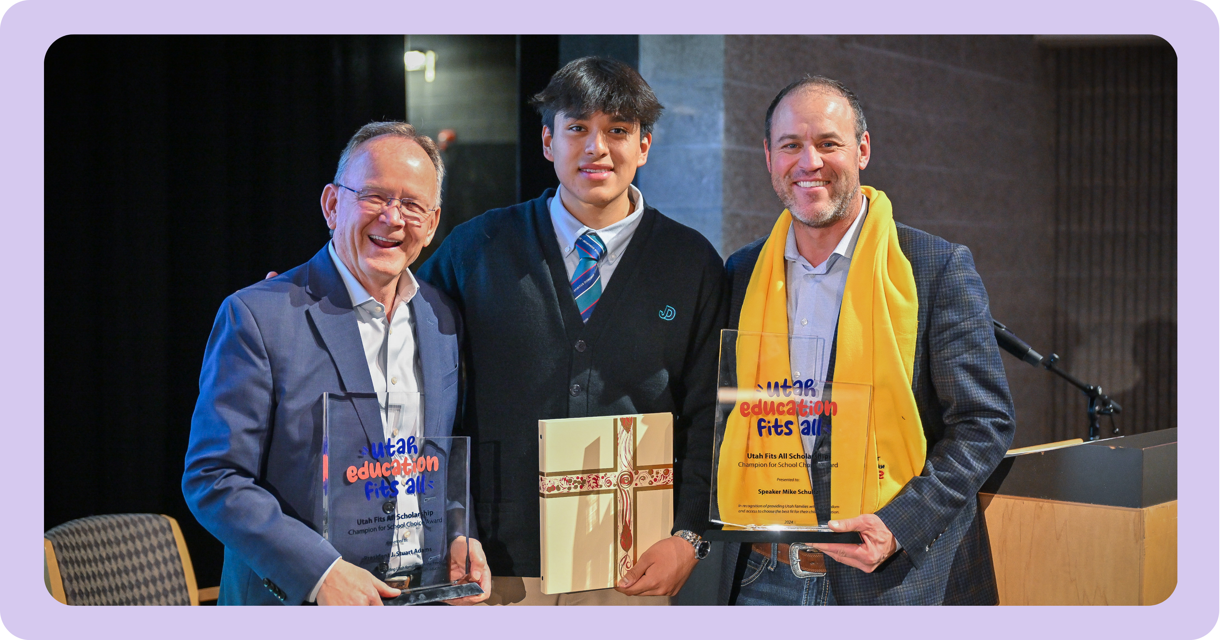 We honored our Champions for School Choice with an award and heard remarks from Speaker Mike Schultz, President Stuart Adams, and Senator Kirk Cullimore, all staunch believers in empowering parents with the freedom and access to choose the best fit for their child’s education. We also acknowledged bill sponsor, Representative Candice Pierucci, who was unable to join but truly wanted to be there to celebrate with all of you. The leadership of these courageous lawmakers is why we have the Utah Fits All law and funding today! |